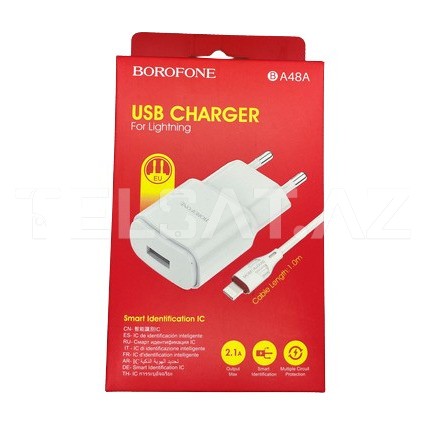 Borofone B A48A, Lightning konnektoru ilə təchiz olunmuş bir şarj cihazıdır. Bu cihaz, Apple cihazlarınızı effektiv və sürətli bir şəkildə şarj etmək üçün idealdir.